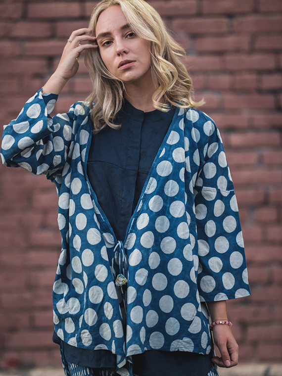 Longsleeve Outer in Polkadot Indigo