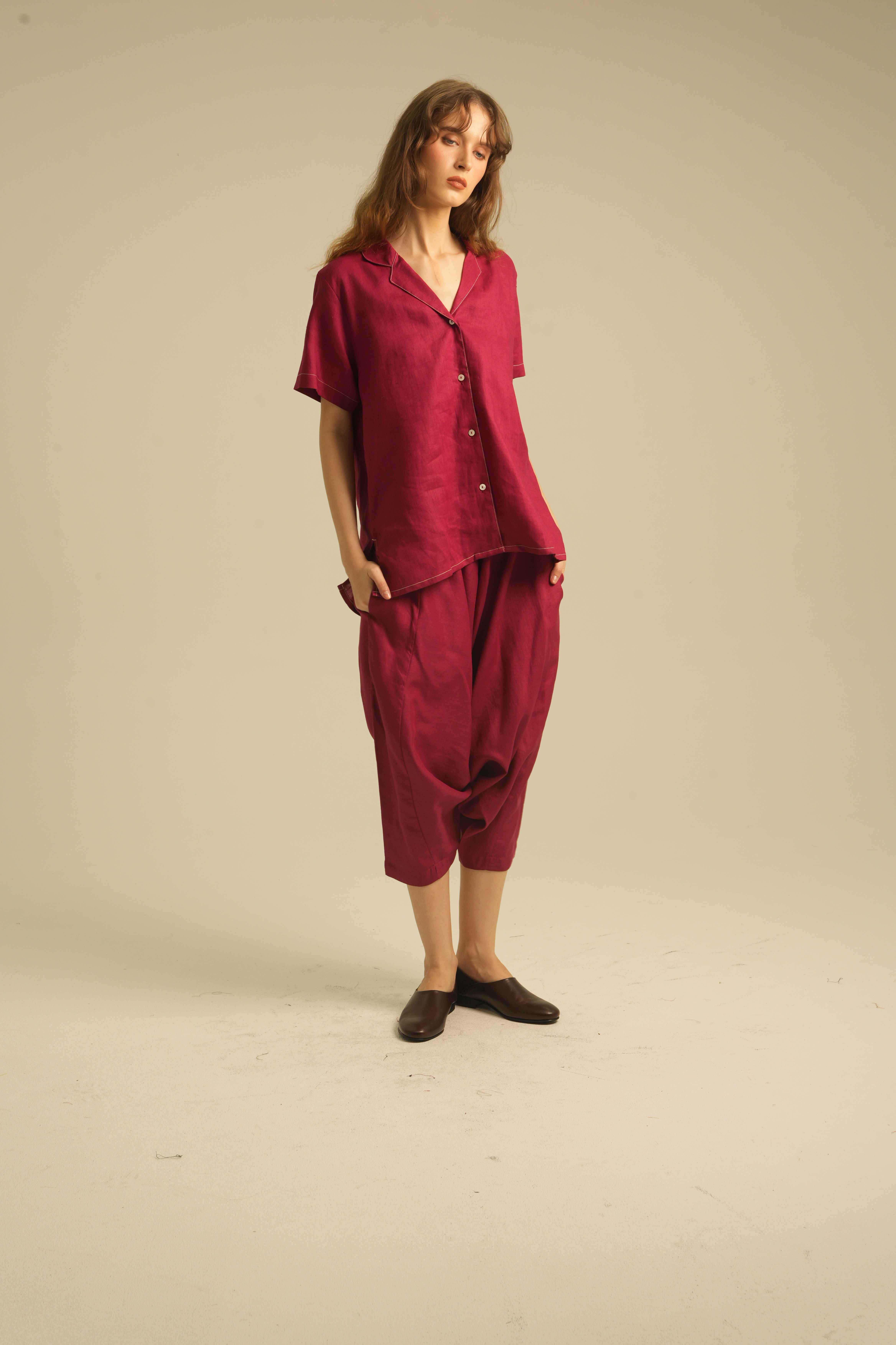 Waist Elastic up to 102 Cm Length 86 Cm Hip 110 Cm Rise 65 Cm Weight 500 gr Made from 100% premium linen Actual color may differ from the screen due to lighting and depending on the device you are using.