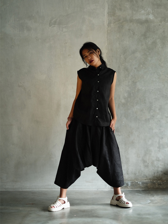 Waist Elastic up to 102 Cm Length 86 Cm Hip 110 Cm Rise 65 Cm Weight 500 gr Made from 100% premium linen Actual color may differ from the screen due to lighting and depending on the device you are using.