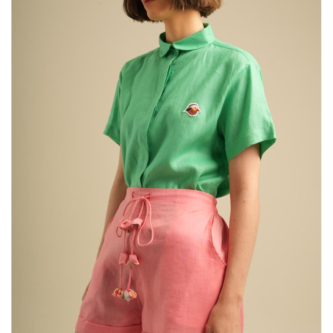Sleek Looking Shirt with Mandarin Duck Embroidery. Made of 100% Premium Linen