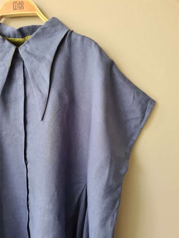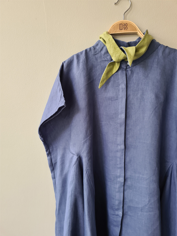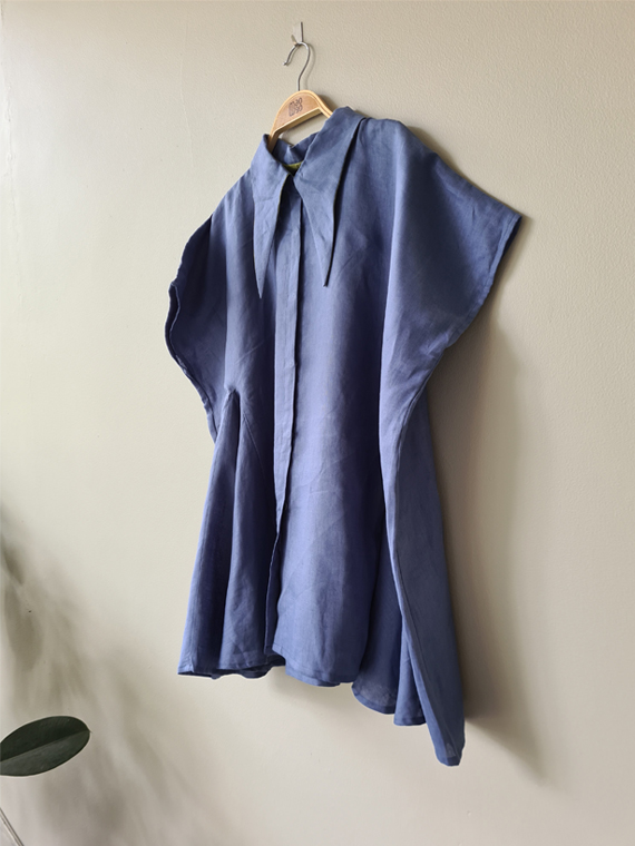 Freesize long shirt with adjustable collar. Can be worn as mini dress,depends on individual height. Fabric : 100% linen Measurements : Length : 70 cm Arm hole : 42 cm Bust up to 142 cm Actual color may differ from the screen due to lighting and depending on the device you are using By PO +/- 2 working days