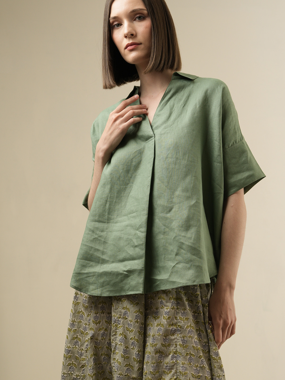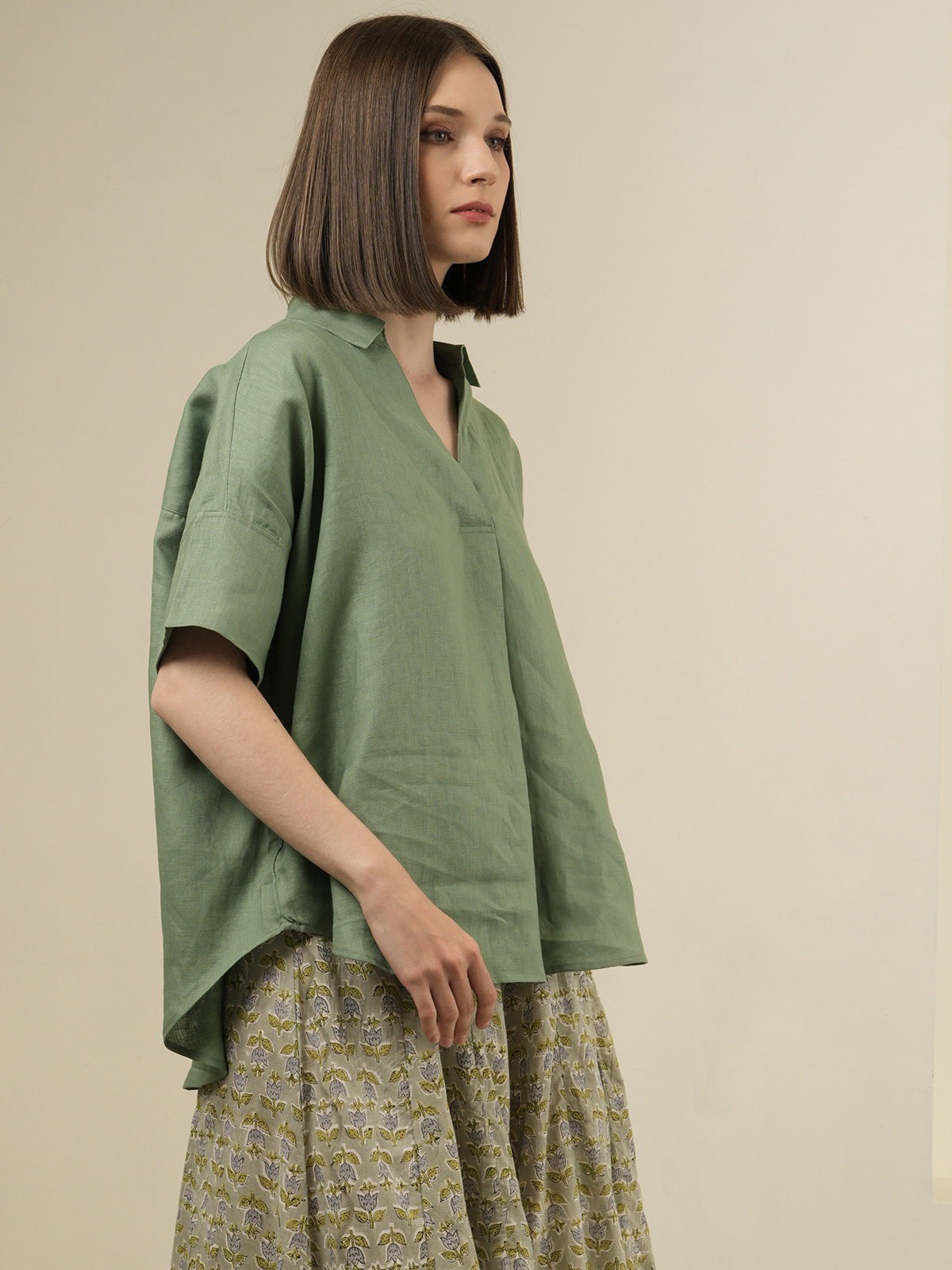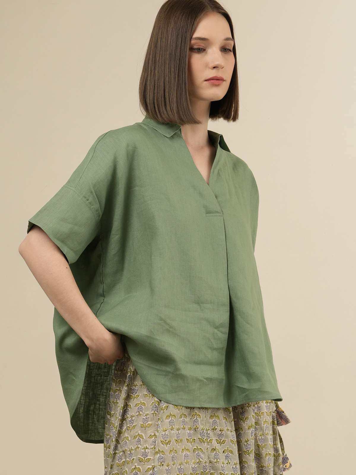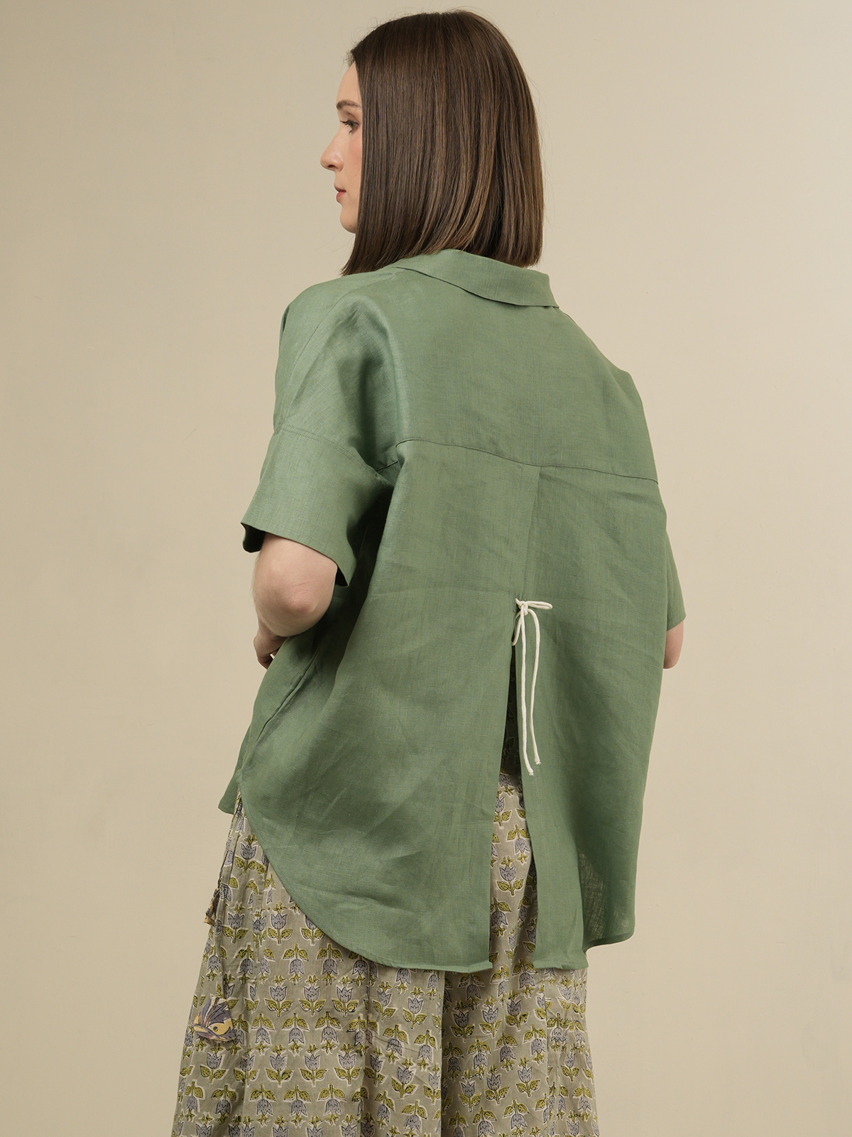 Relaxed Shirt with Back Slit. Made of 100% Premium Linen