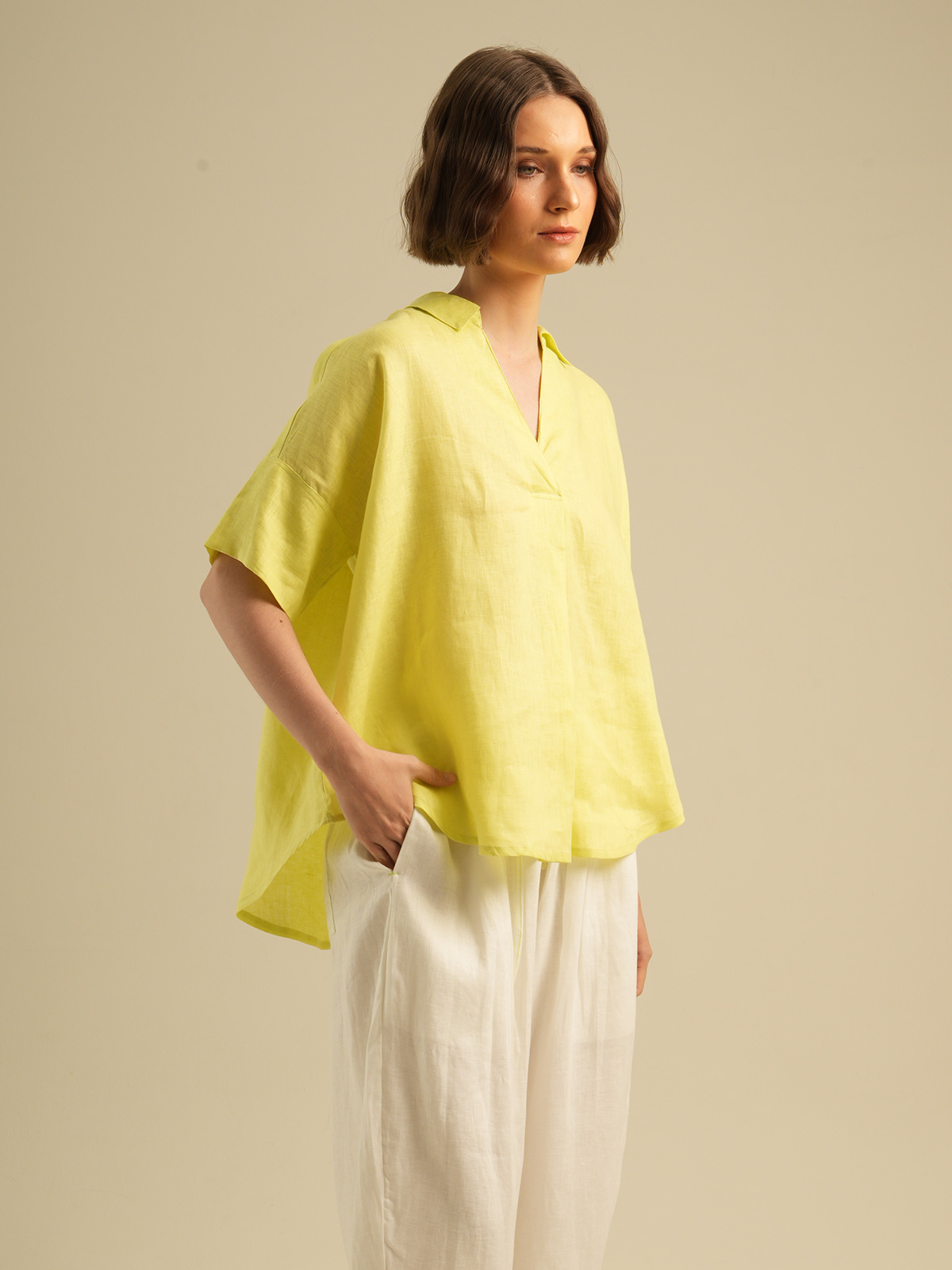 Relaxed Shirt with Back Slit. Made of 100% Premium Linen