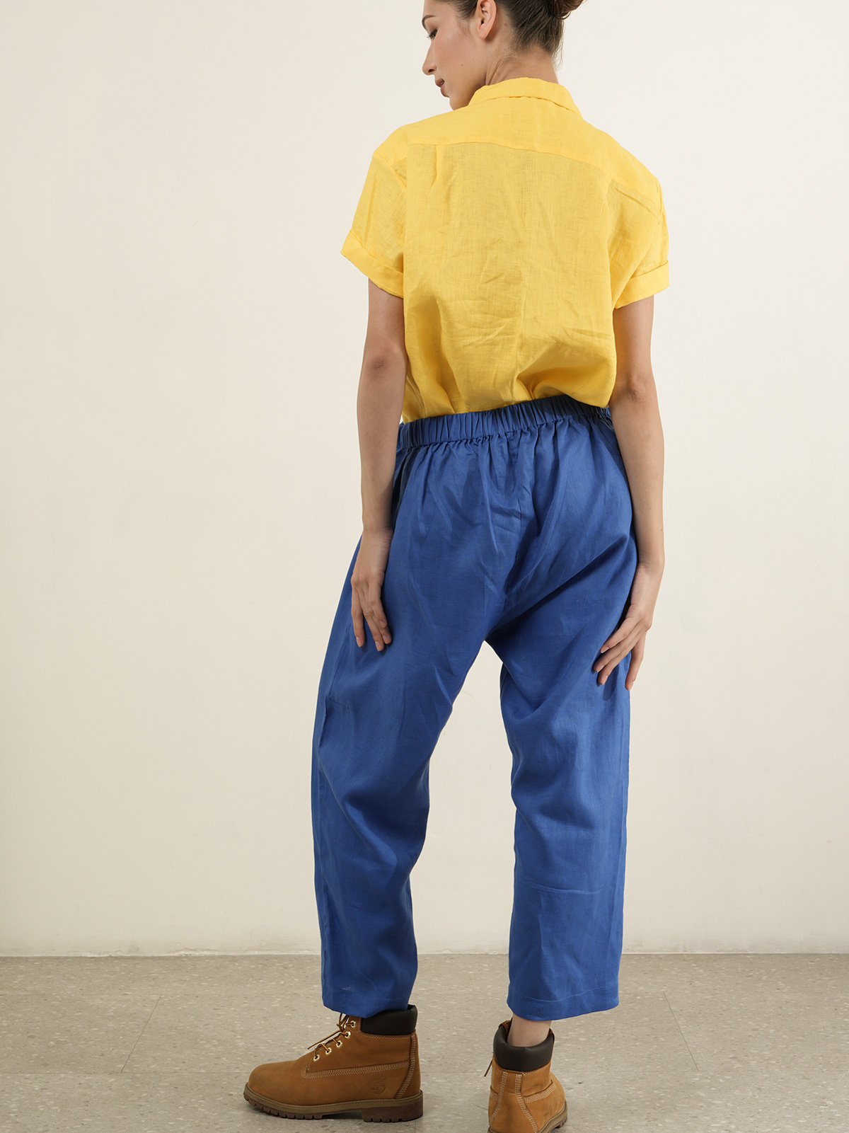 Crop pants,elastic waist with drawstring. Made of 100% Premium Linen