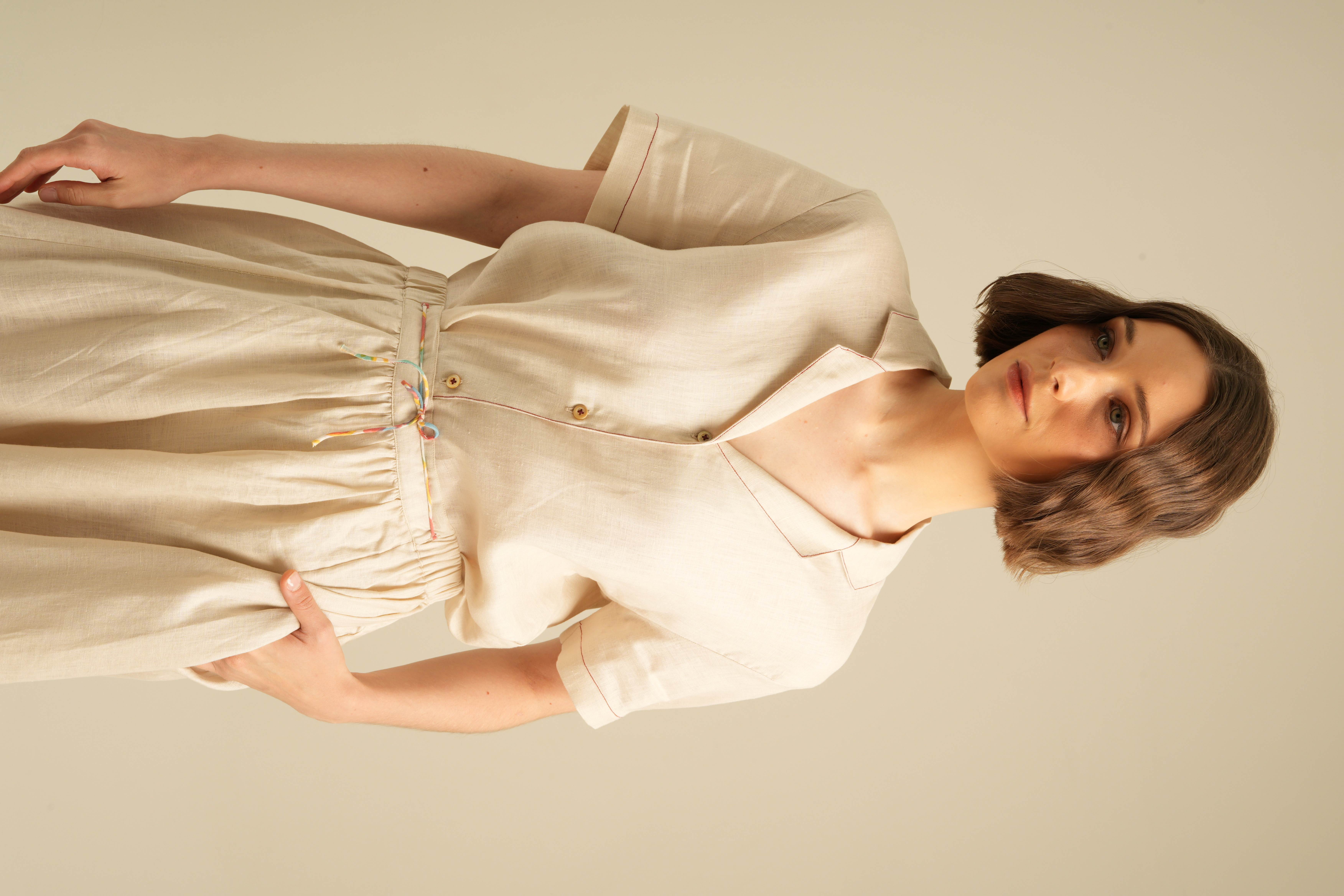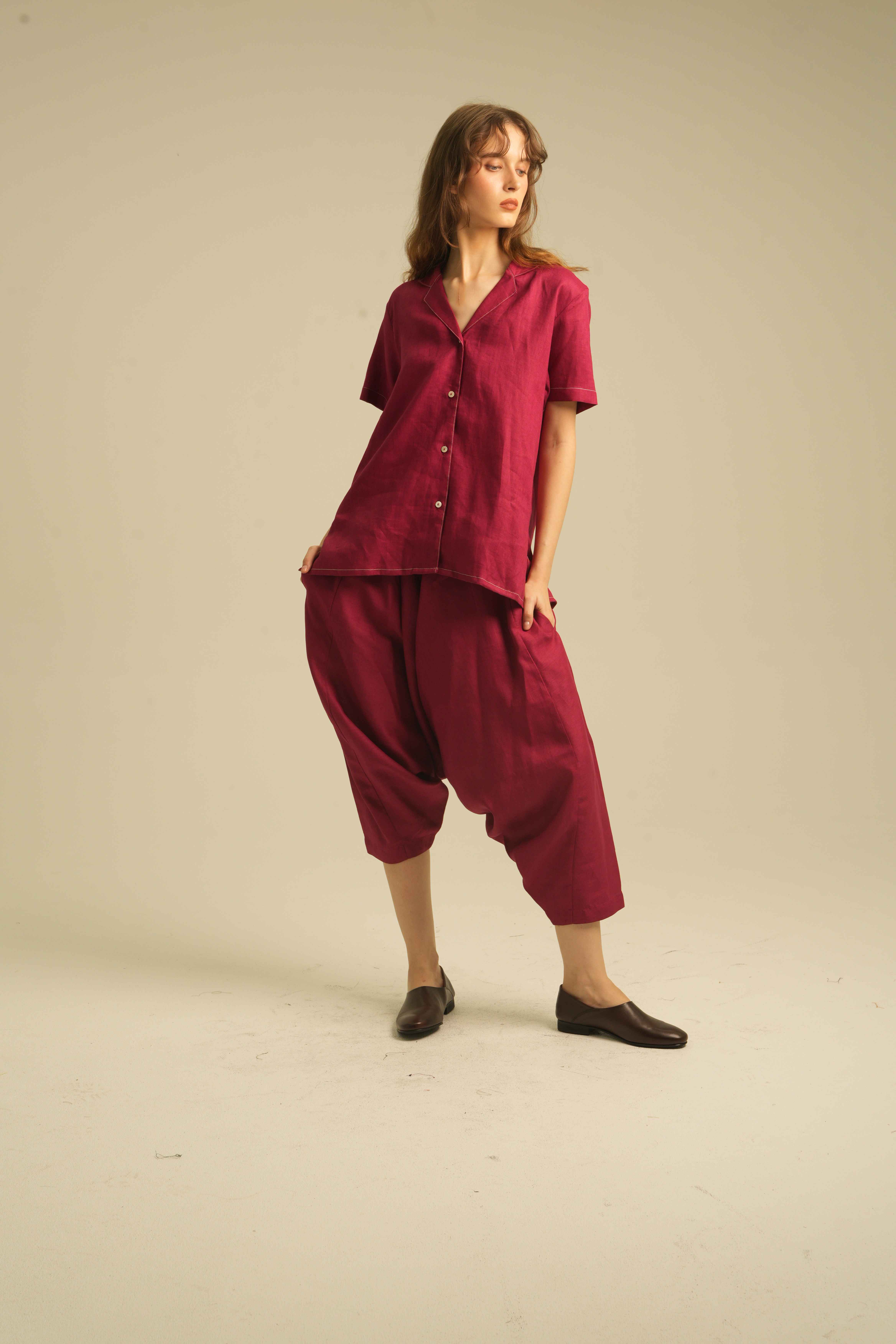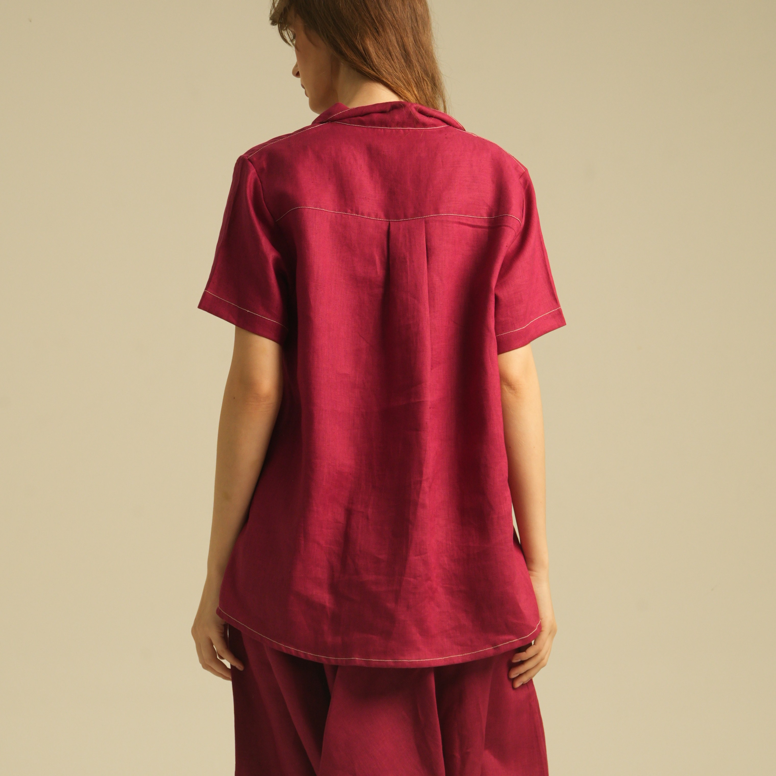 Relaxed Short Sleeves Shirt with Detailed Stitches. Made of 100% Premium Linen