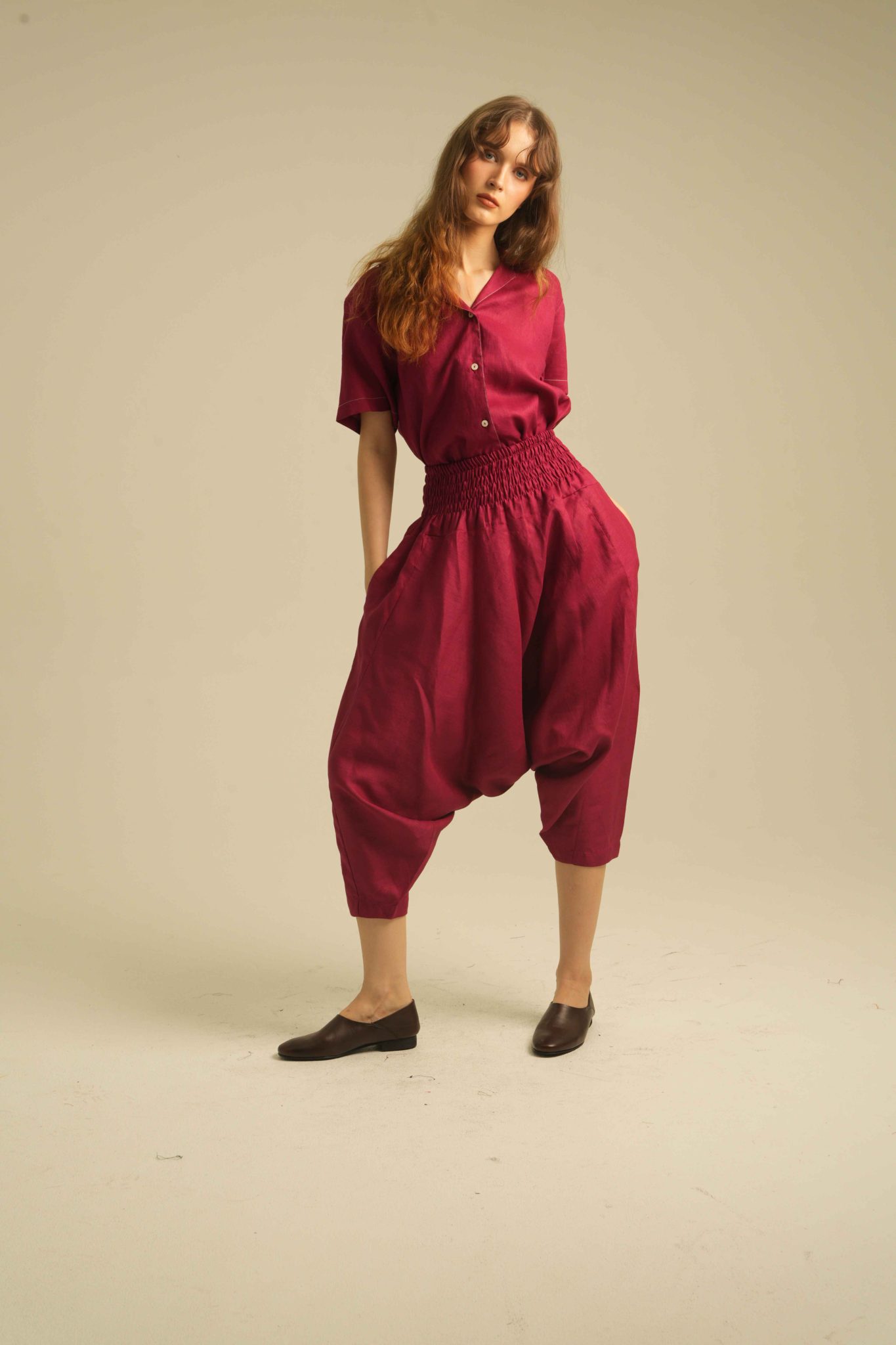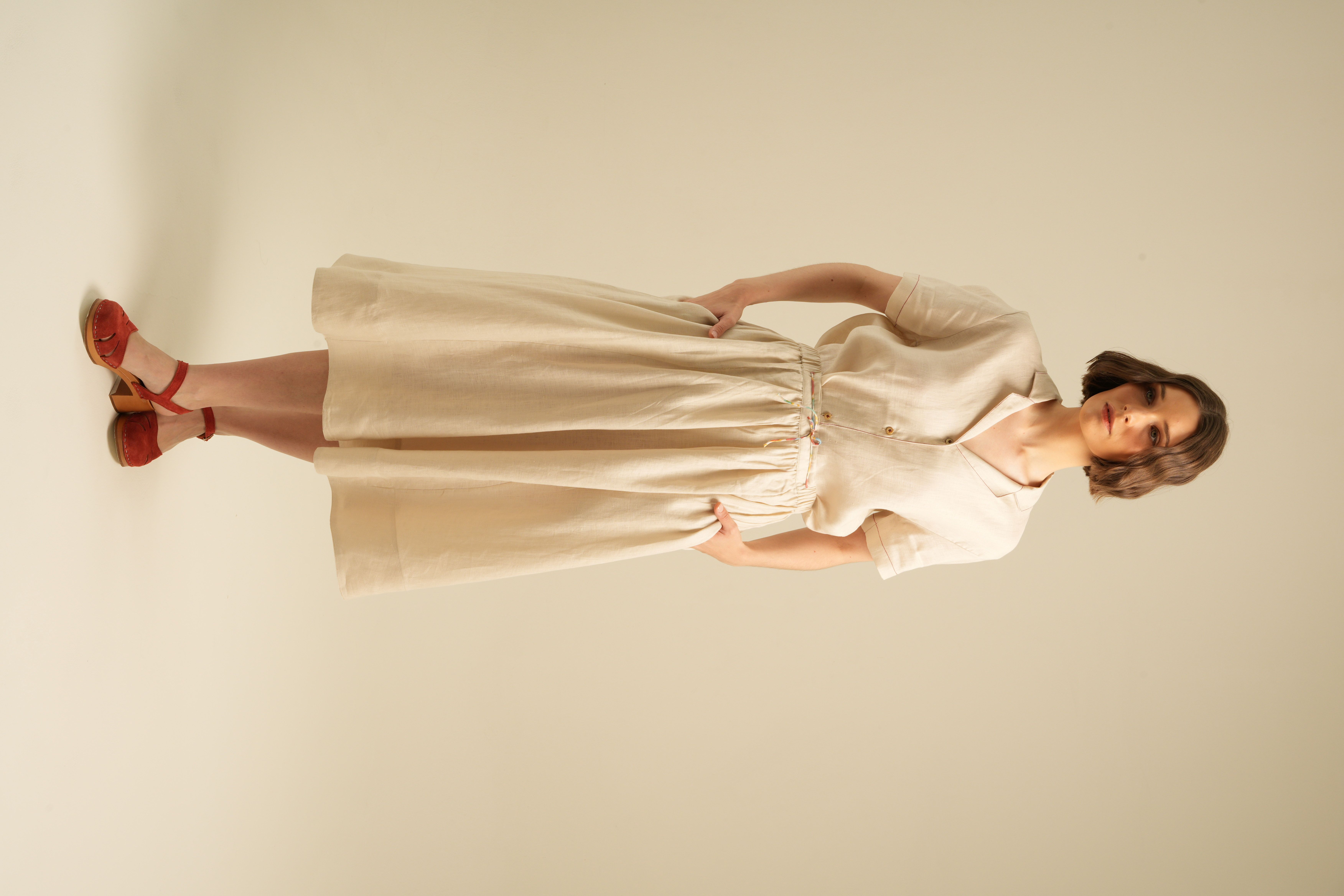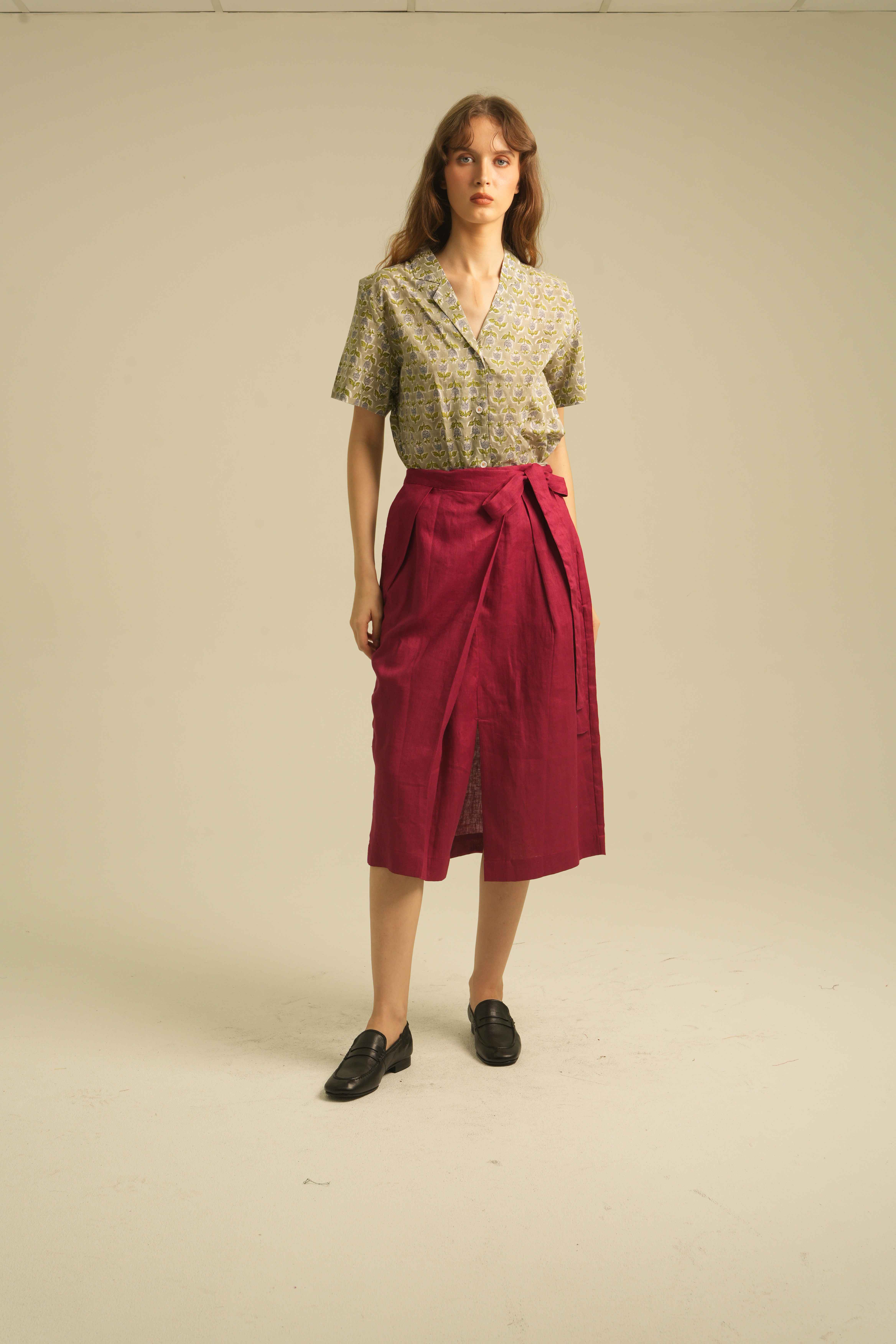 Relaxed Short Sleeves Shirt with Detailed Stitches. Made of 100% Premium Linen