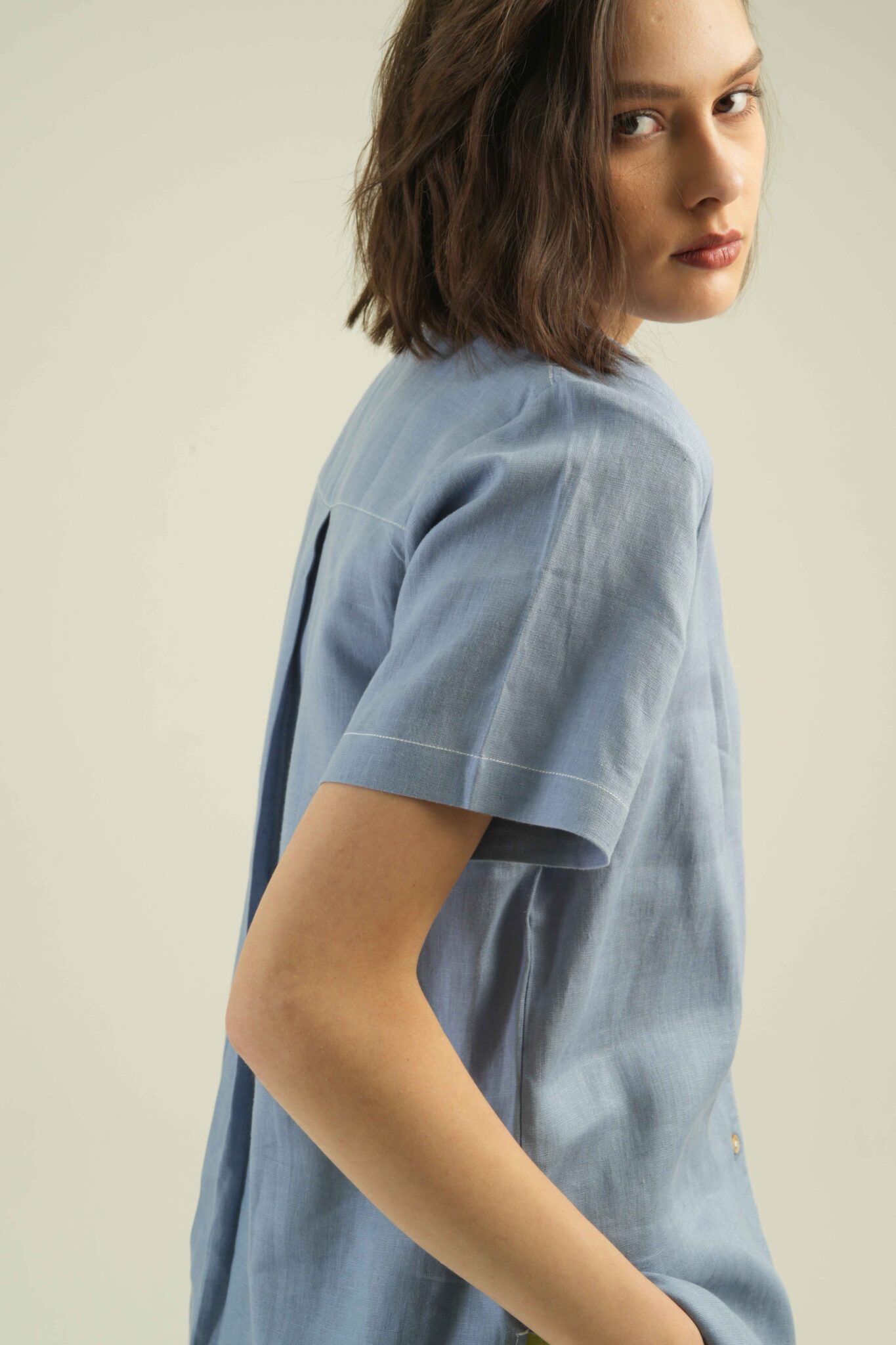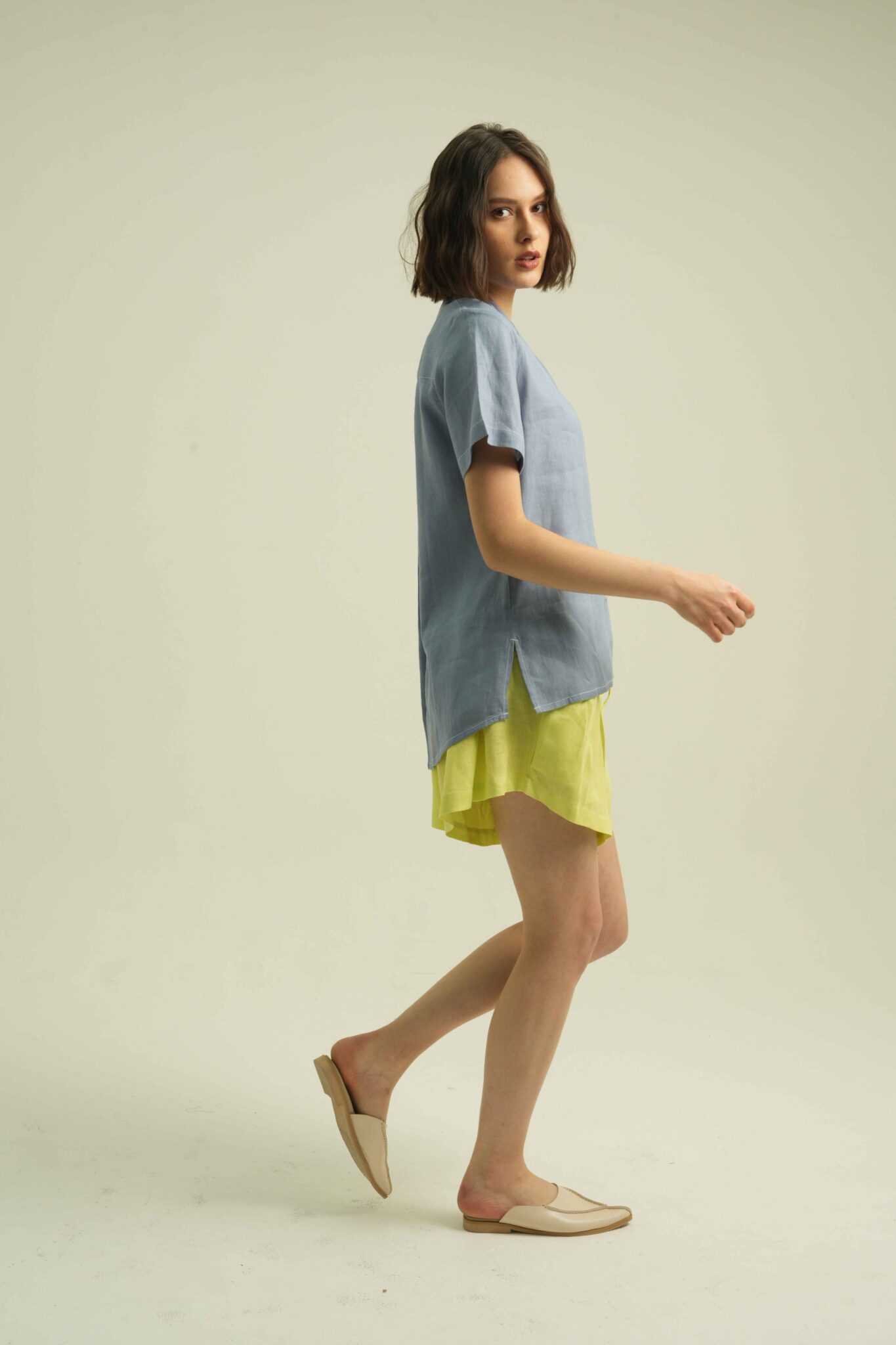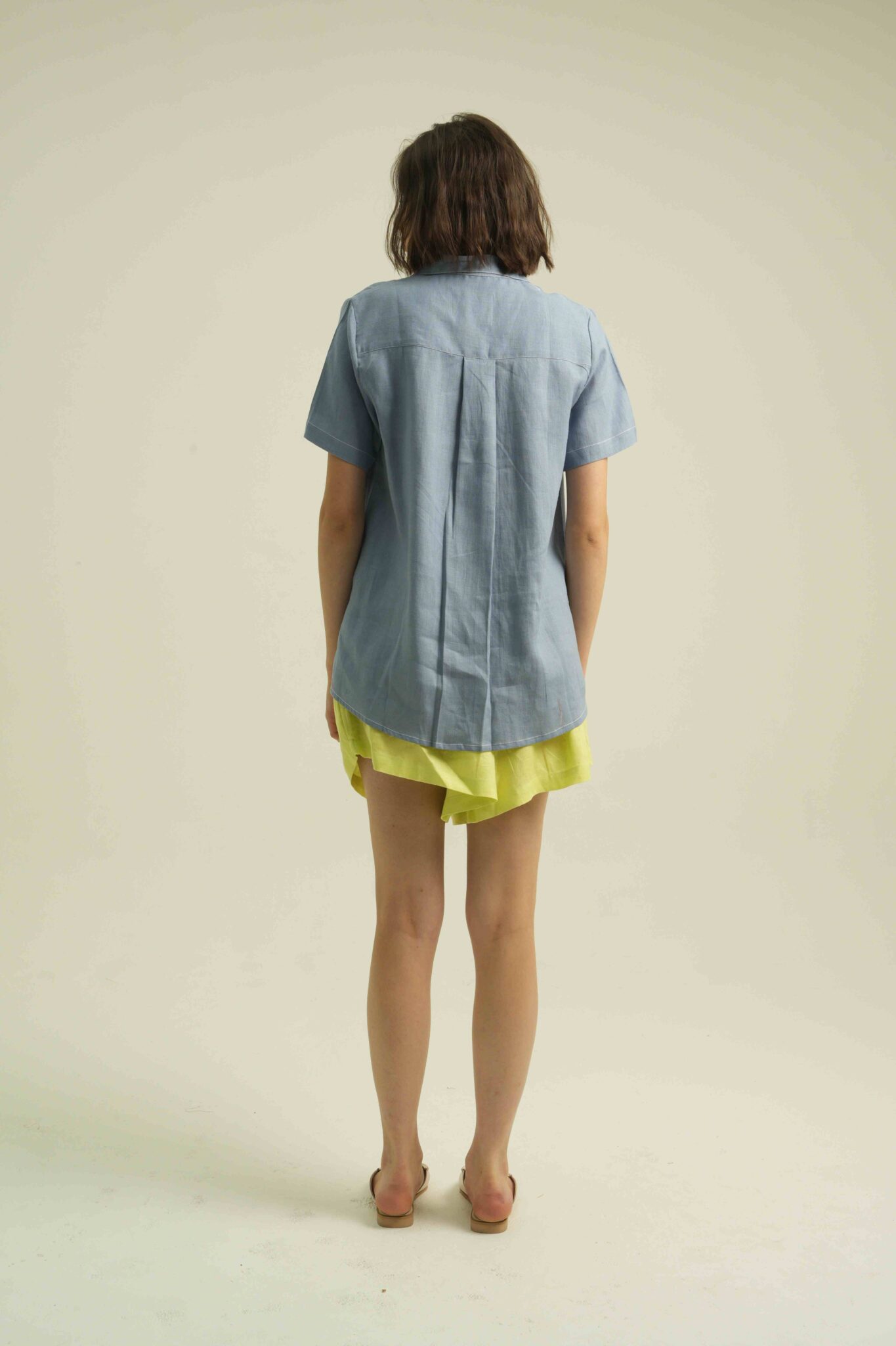 Relaxed Short Sleeves Shirt with Detailed Stitches. Made of 100% Premium Linen