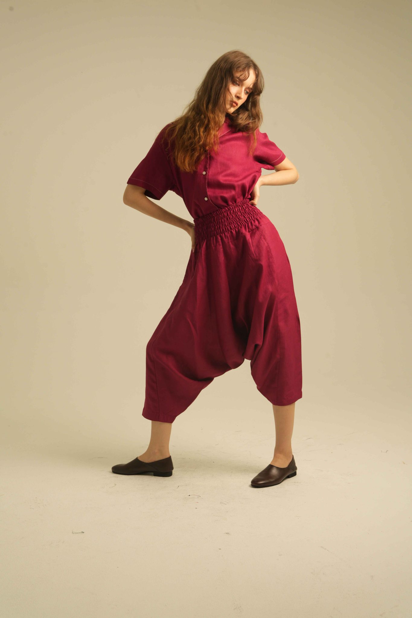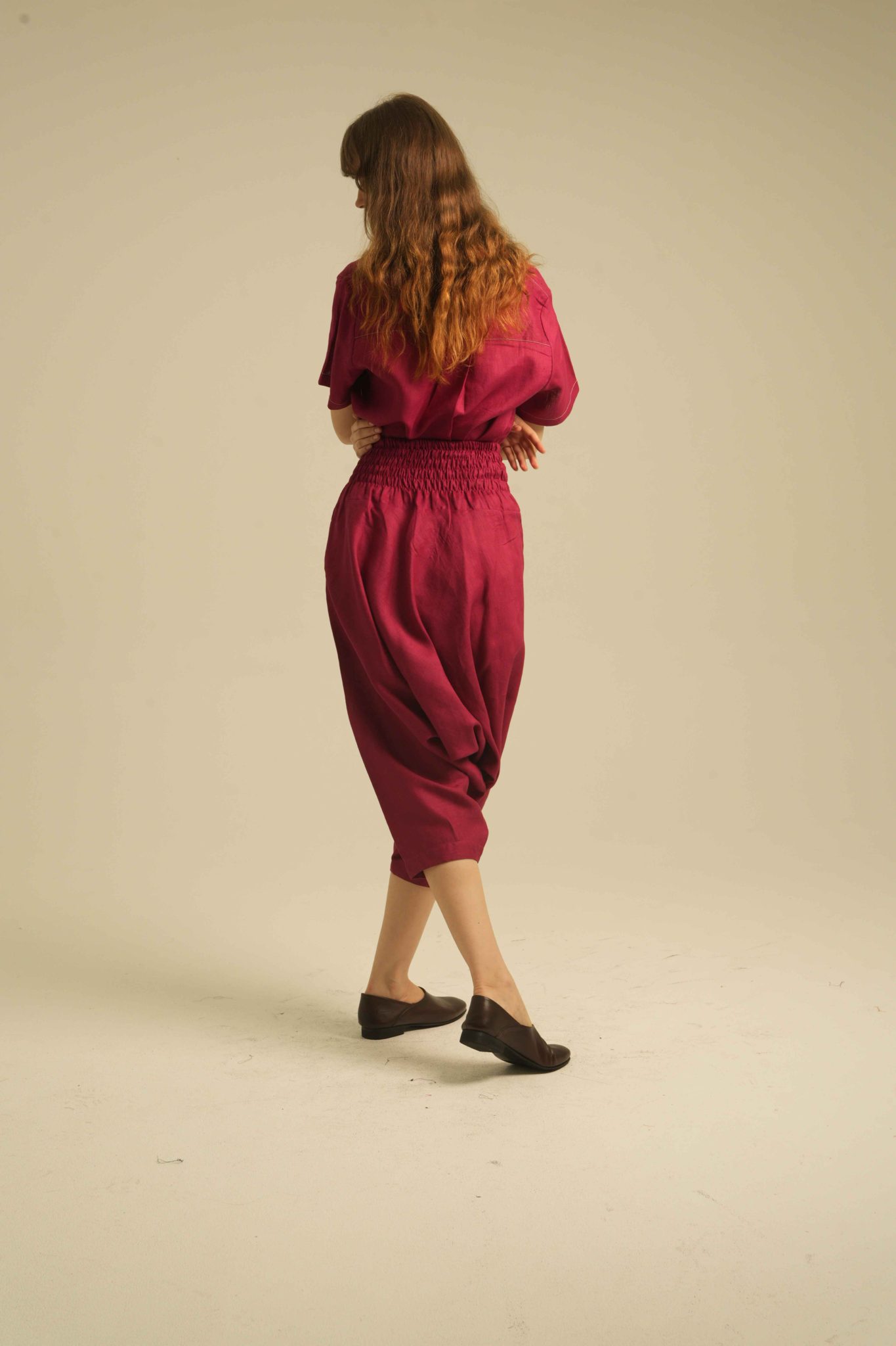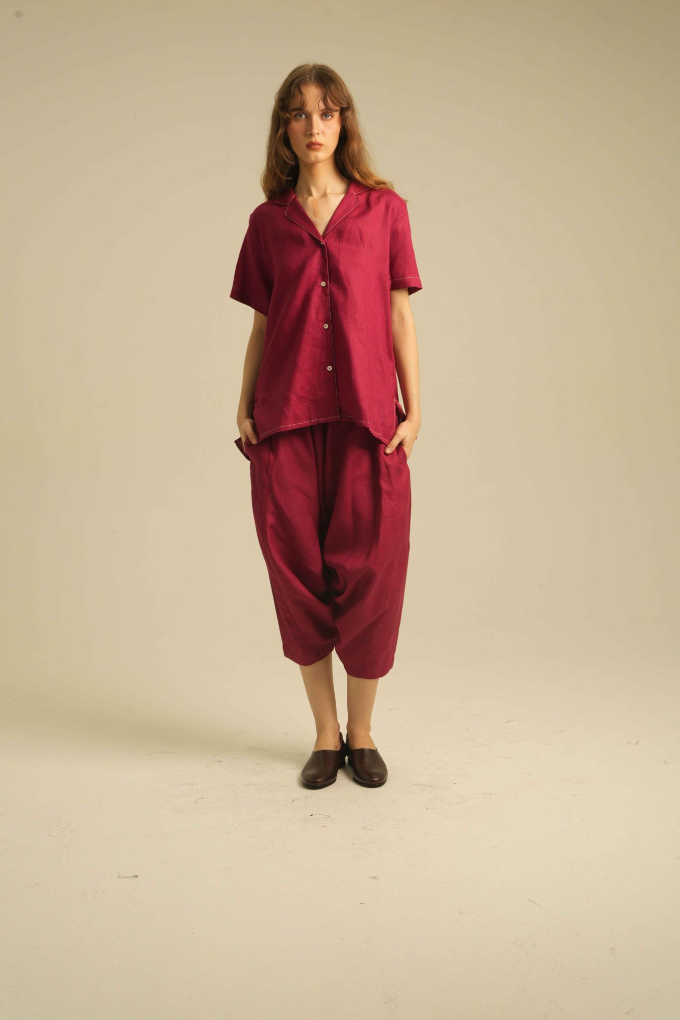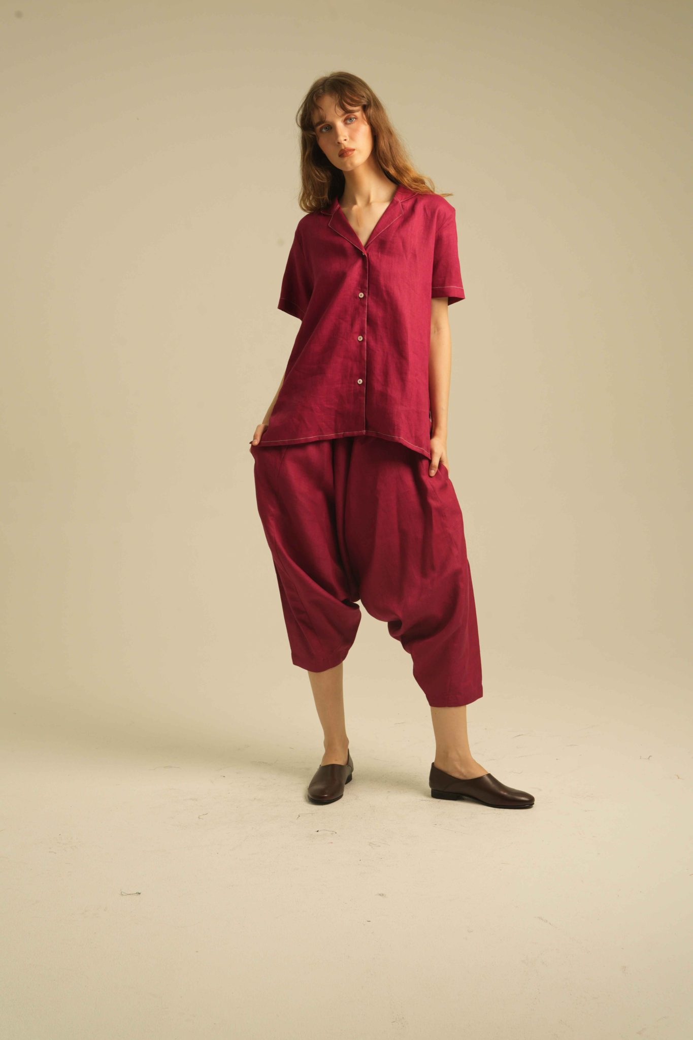 Relaxed Short Sleeves Shirt with Detailed Stitches. Made of 100% Premium Linen