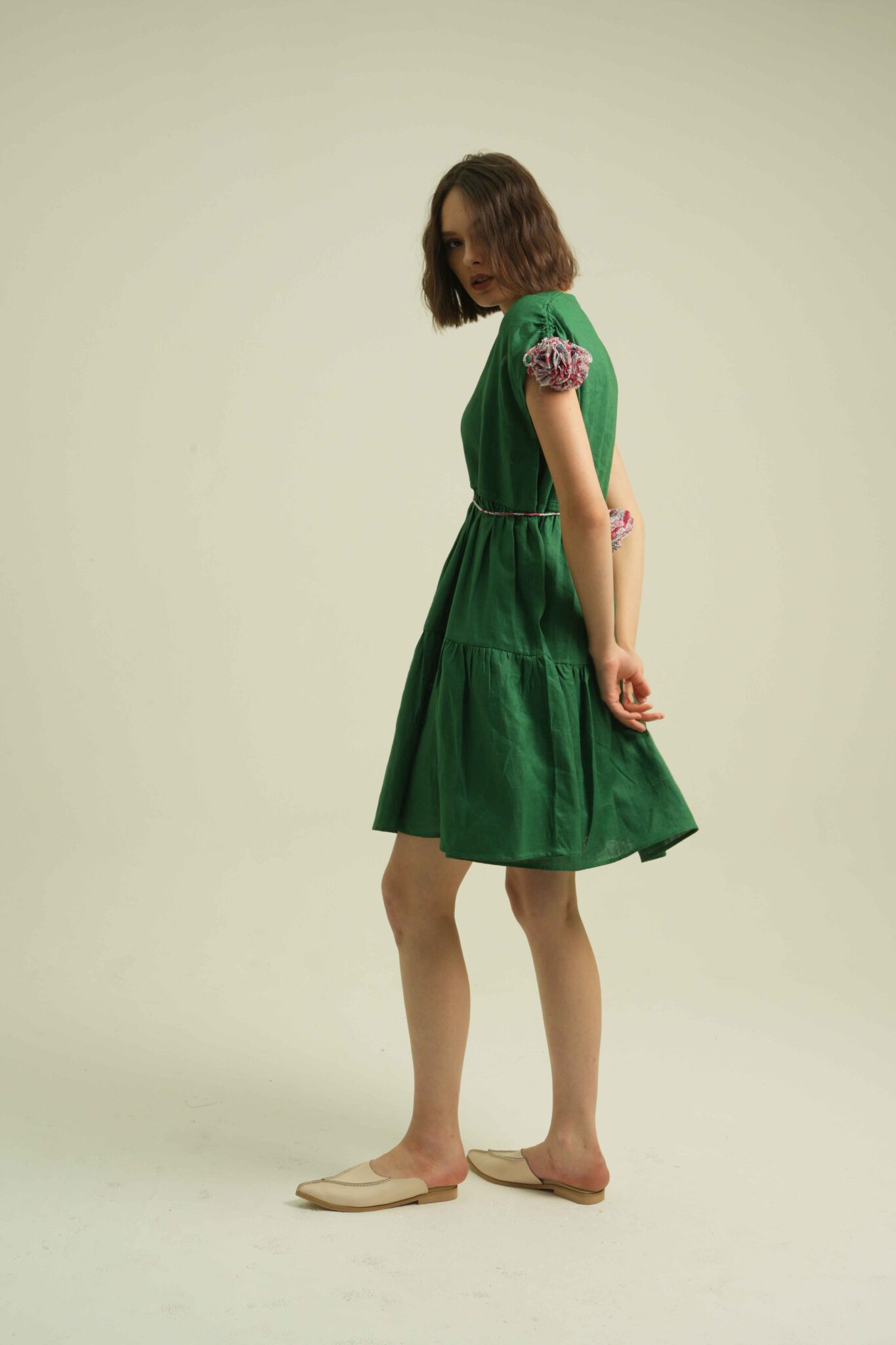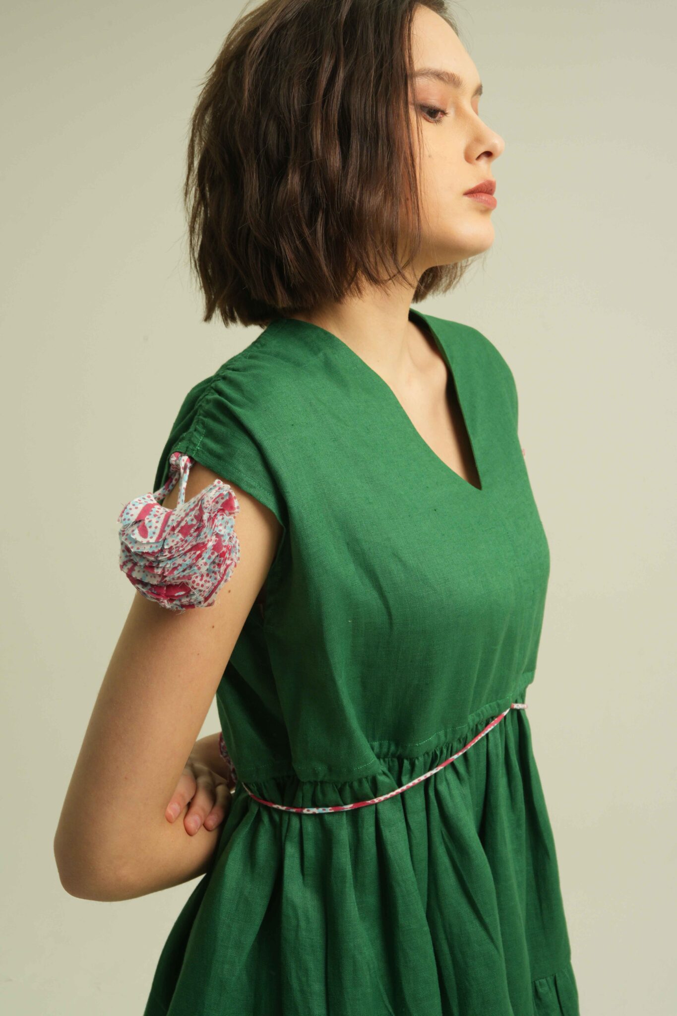 Pompom Dress in Pine Green