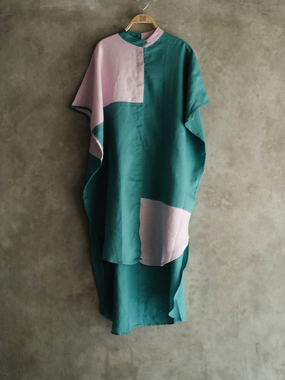 Titalee Linen Dress in Teal and Pink