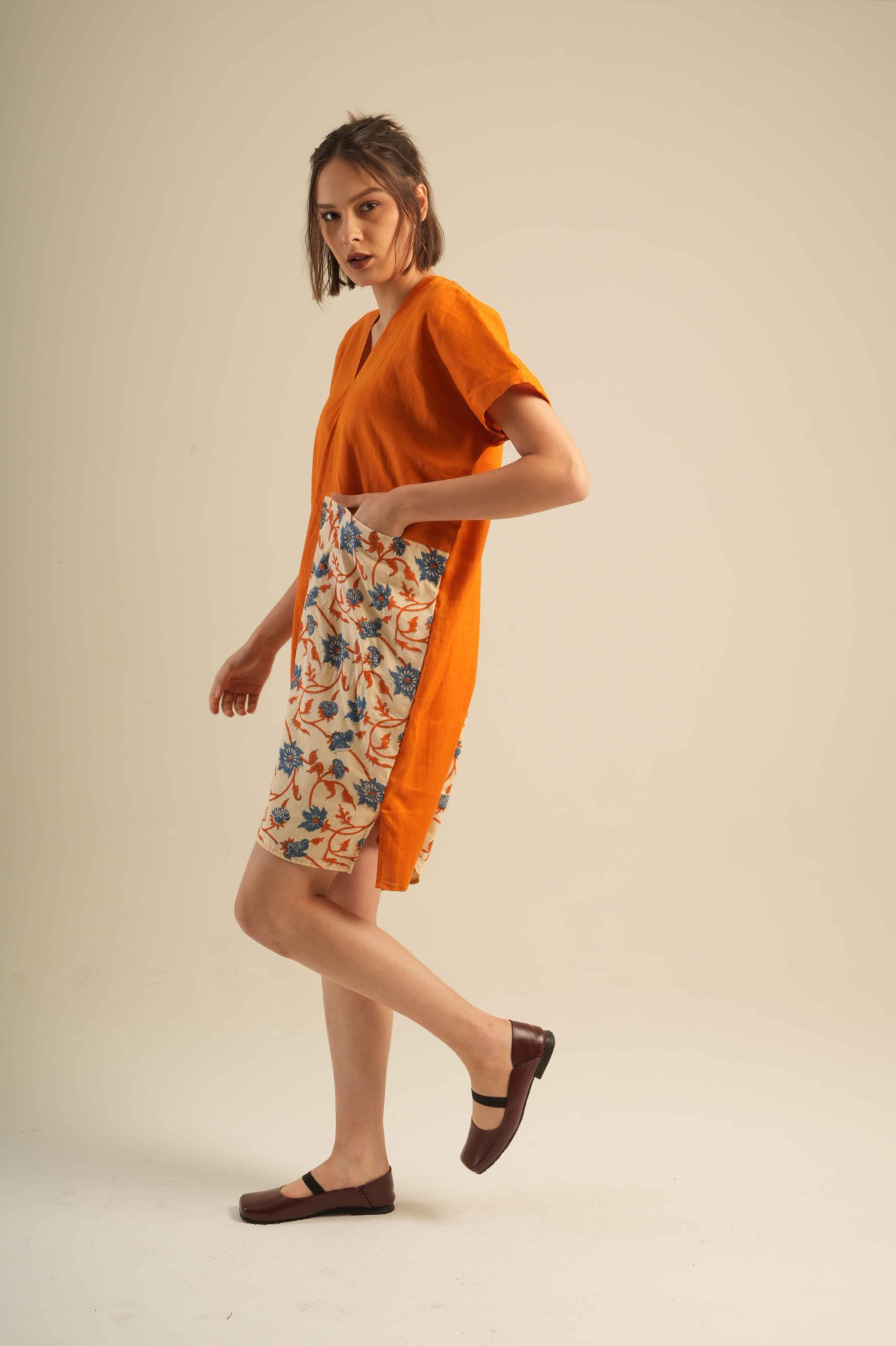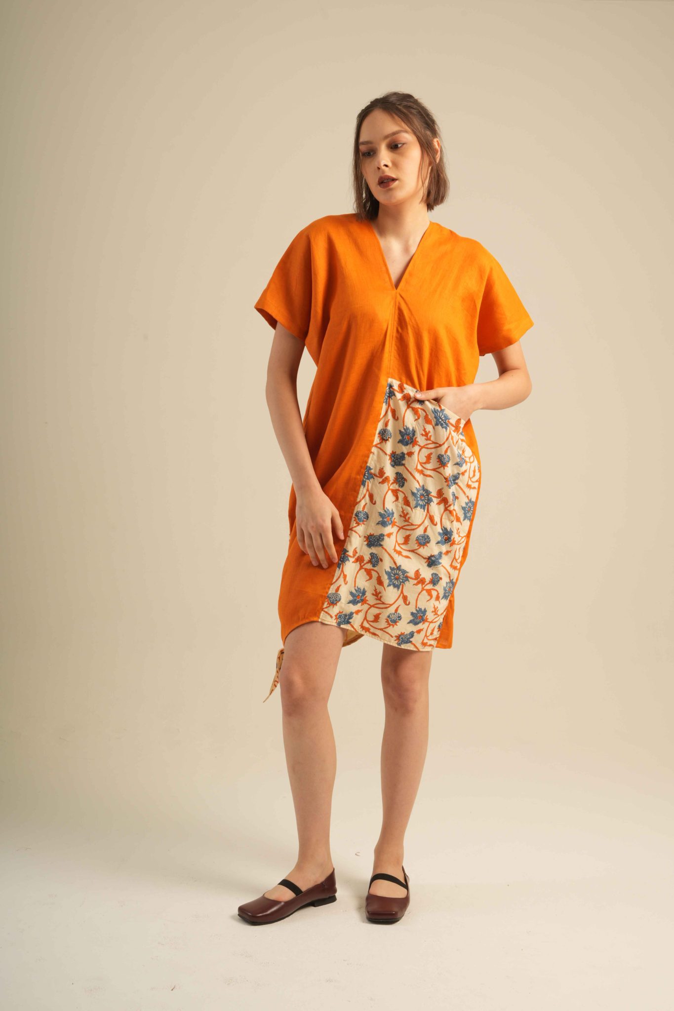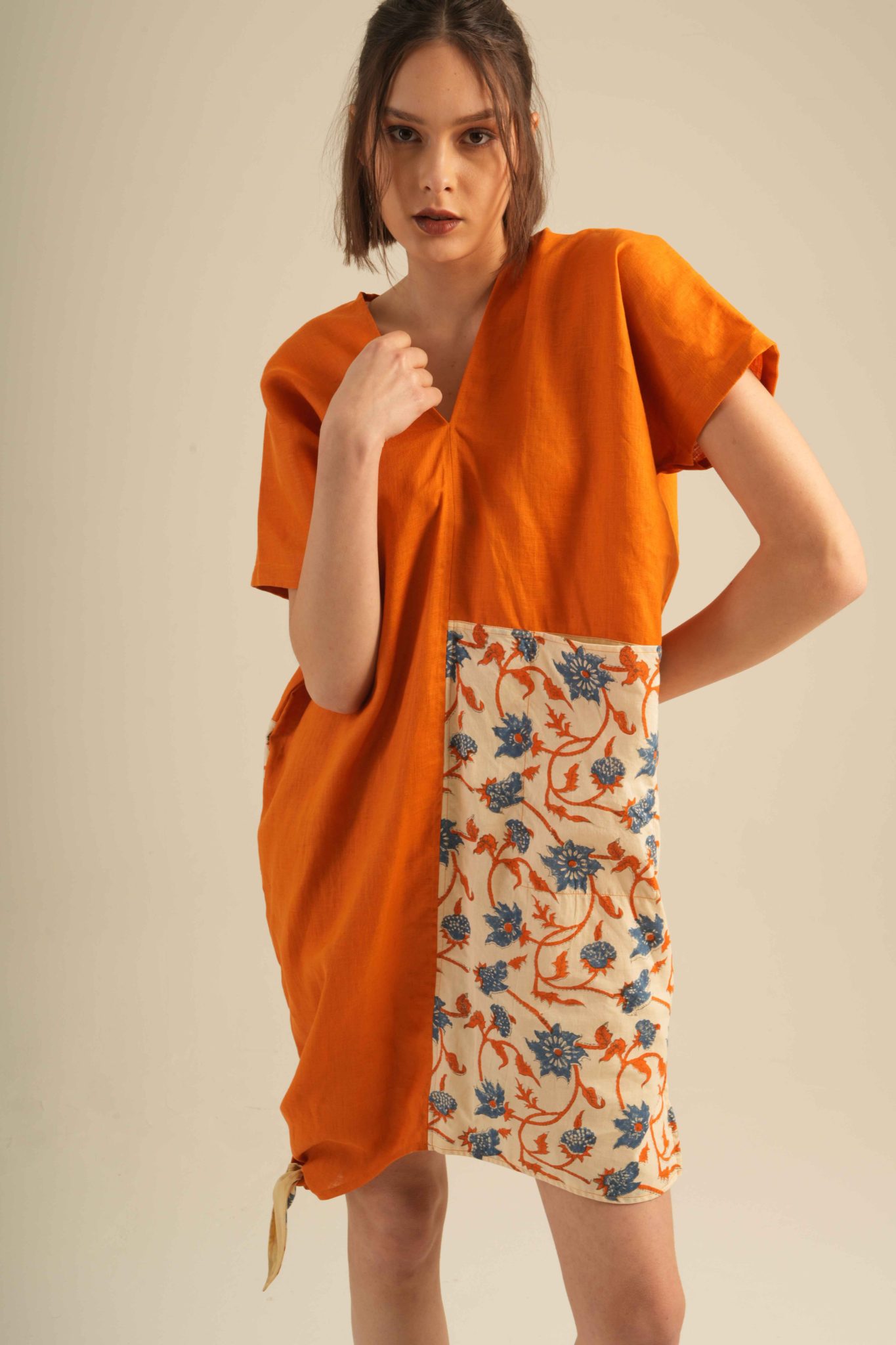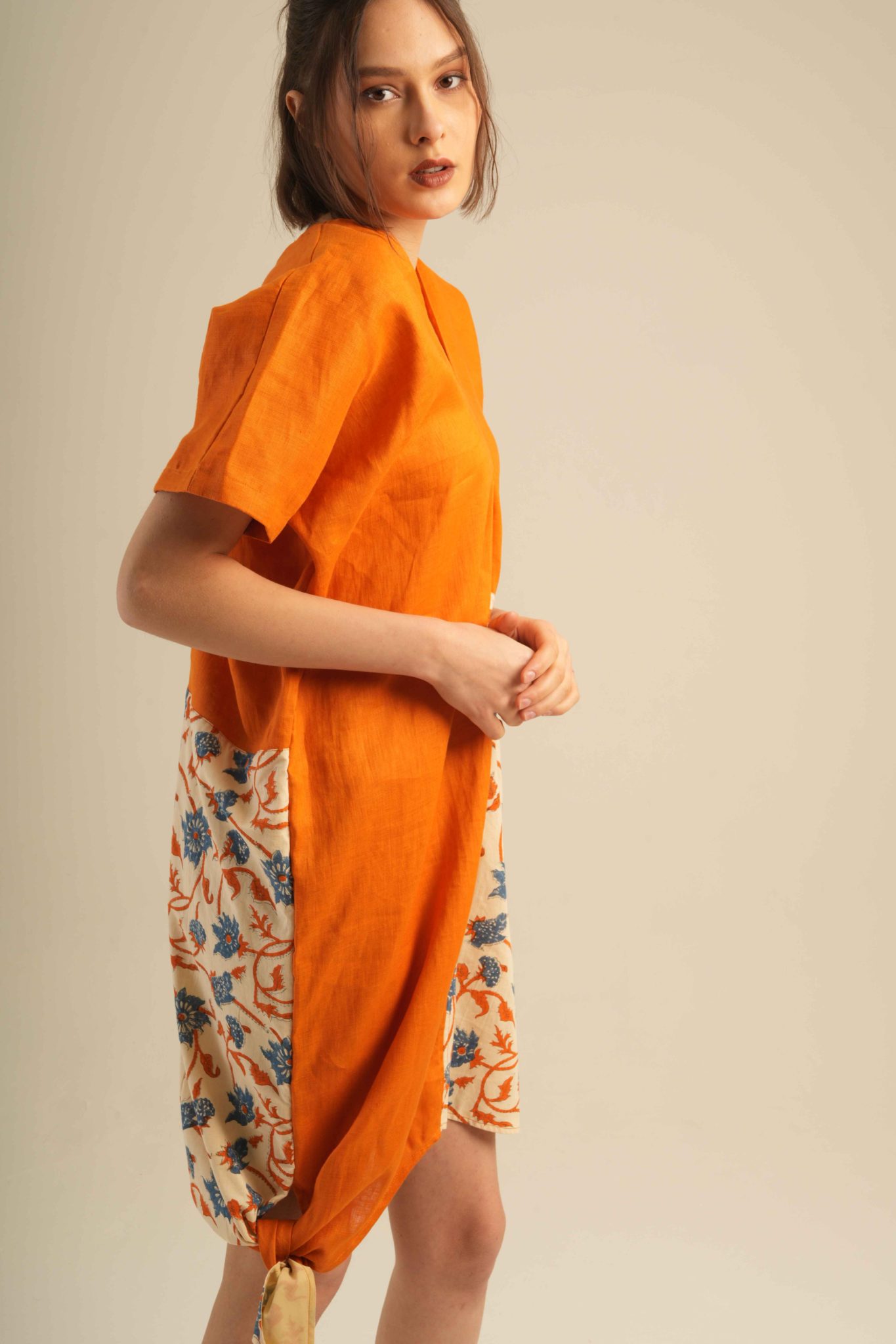 Jai Blouse unique, asymmetrical blouse crafted from 100% high-quality linen and adorned with traditional hand block prints. Designed for comfort with an artistic and elegant touch.